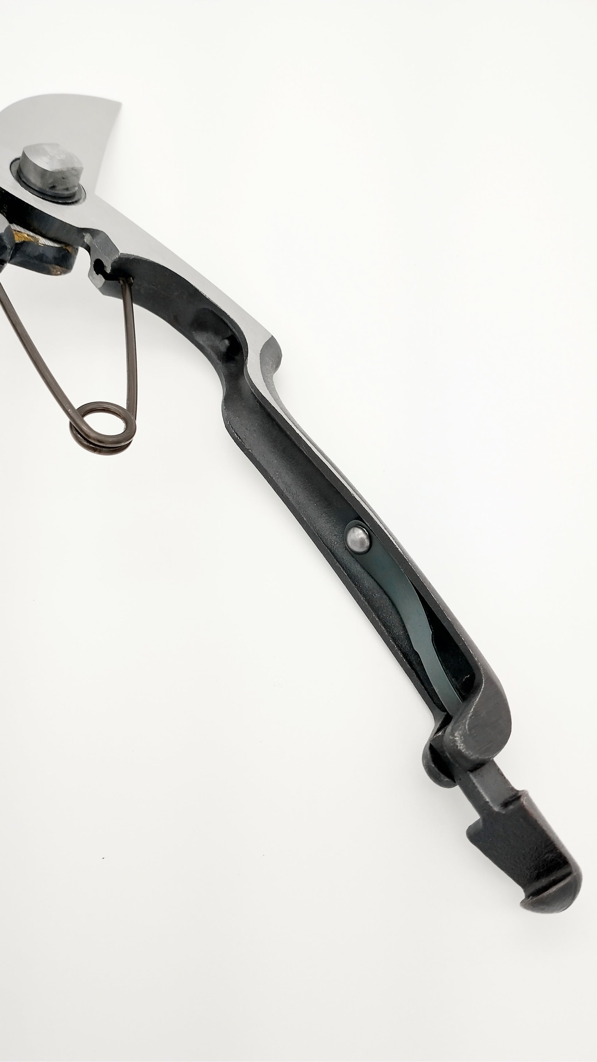 Malleable iron handle with forged blades. Specific high carbon steel (YSS Blue steel) have been bonded and forged into a cutting surface for durability and superior blade performance.